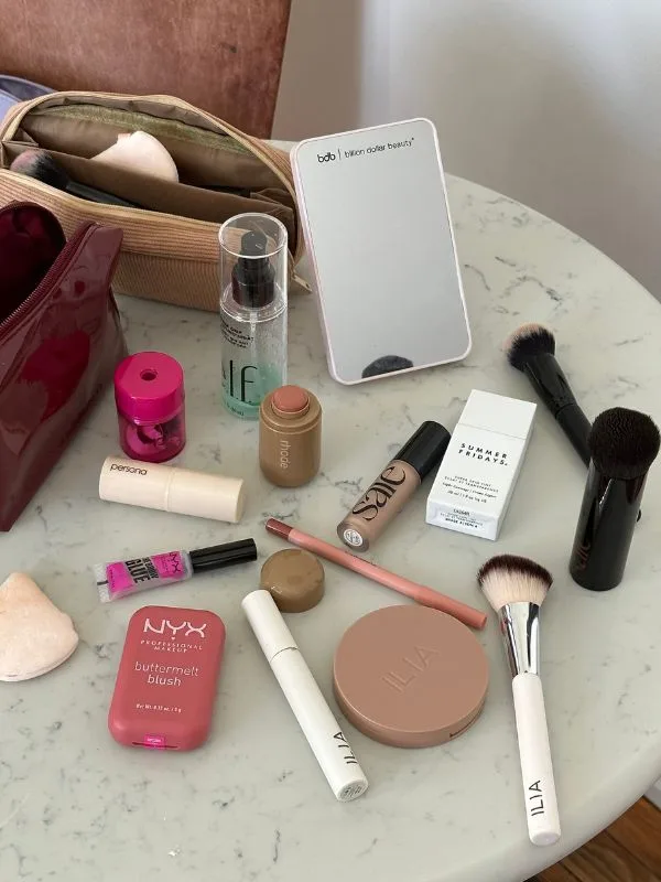 This season, trending blush styles include draping (where you blend blush from your cheeks up to your temples) and using peachy or rosy tones for a fresh, natural look.